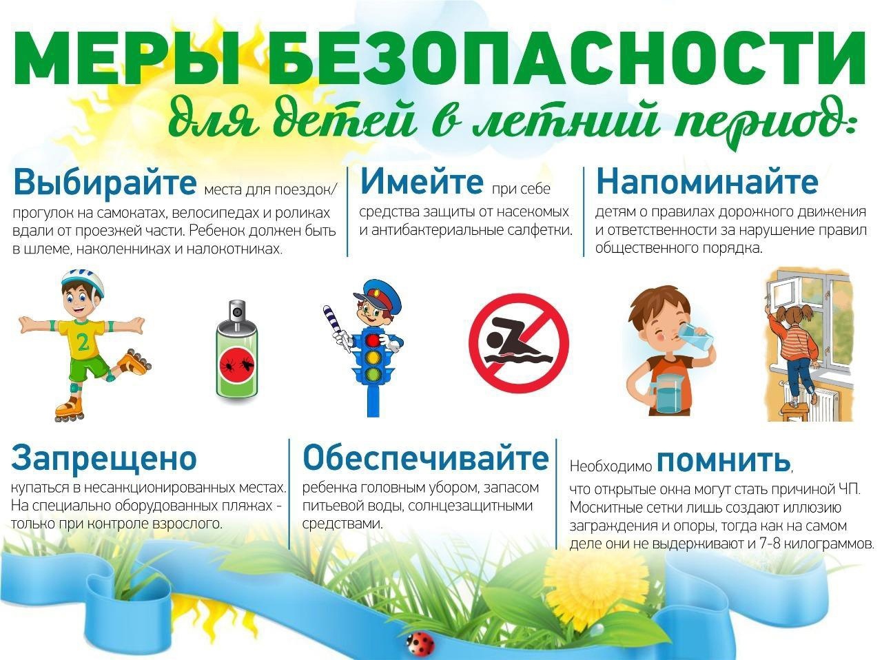 Мы предлагаем изучить материалы, направленные на информирование о мерах обеспечения безопасности детей, оххраны их жизни и здоровья в период летних каникул: